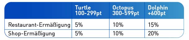 Wenn Sie die folgende Punktzahl erreichen, erhalten Sie neue Vorteile an Bord: Freuen Sie sich auf Shopping an Bord, ein Abendessen mit Meerblick und neue Punkte zum Sammeln!