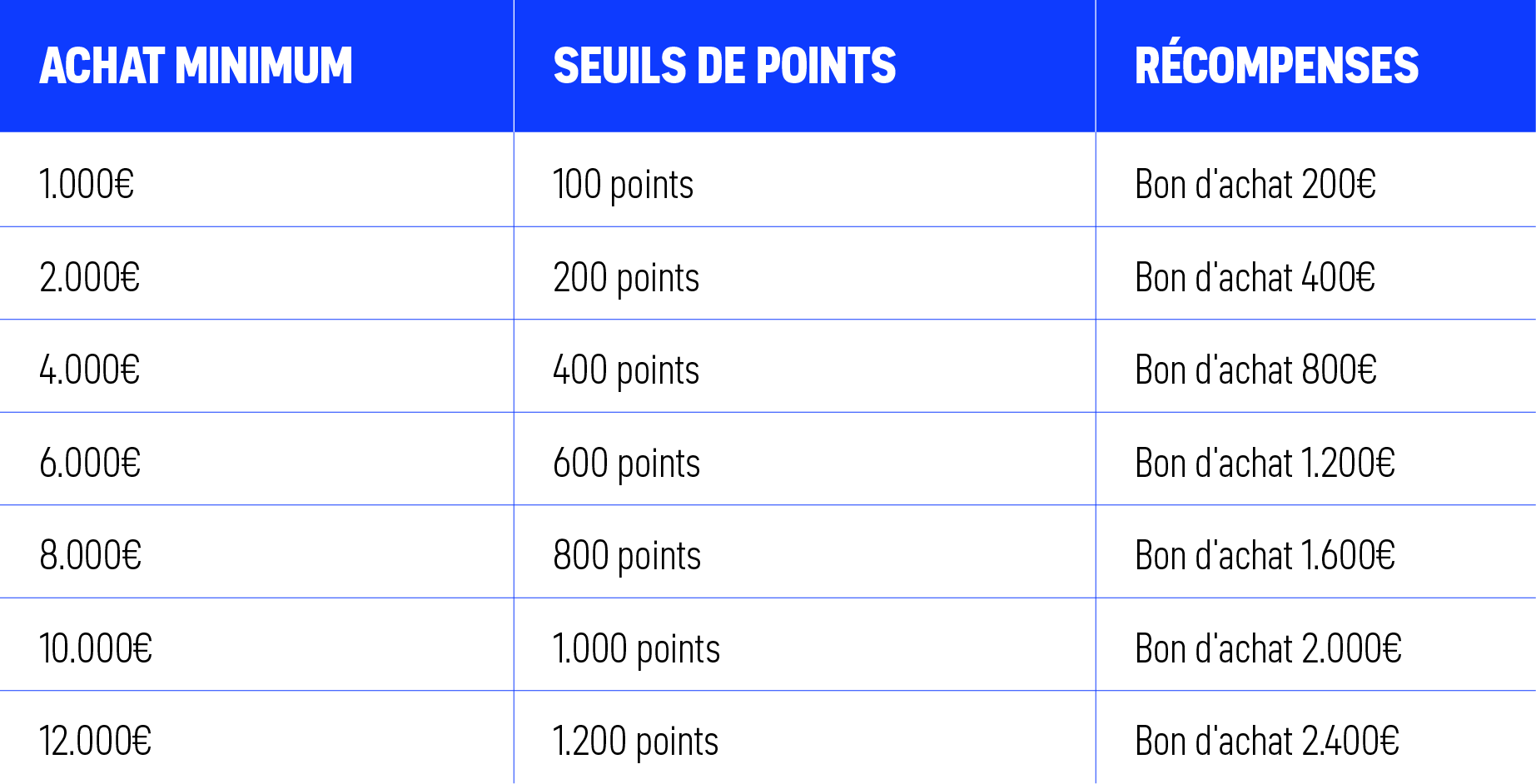 Vous pourrez bénéficier des bons de remises une fois que vous avez atteint ces seuils :