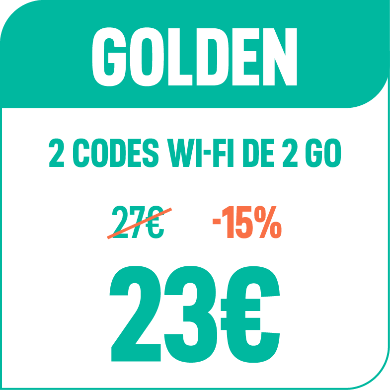 - Gold : 2 codes Wi-Fi de 2 Go à 23 €, pour ceux qui souhaitent plus de données pour le streaming, les réseaux sociaux et le travail.