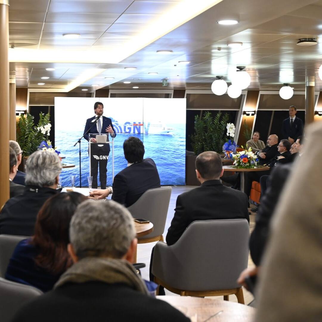 Durante il proprio discorso l’Amministratore Delegato di GNV, Matteo Catani, ha illustrato le strategie di innovazione e sviluppo della Compagnia, sottolineando l’importanza strategica degli investimenti mirati al rinnovamento della flotta e all’adozione di tecnologie a basso impatto ambientale: “Stiamo investendo in maniera significativa nel piano di rinnovamento della flotta, con l’obiettivo di offrire un servizio sempre più efficiente e moderno, anche dal punto di vista dell’impatto ambientale. Con orgoglio, cogliamo questa occasione per annunciare che le ultime due navi della nostra commessa, GNV Virgo e GNV Aurora, entreranno in flotta entro la fine di quest’anno, con ben undici mesi di anticipo rispetto al progetto iniziale. Questo ritmo accelerato ci consente di espandere rapidamente il nostro piano di sviluppo, rispondendo alle esigenze del mercato e implementando il nostro contributo allo sviluppo economico dei territori coinvolti. La rotta Palermo-Genova è al centro di questa evoluzione: da gennaio è operativa GNV Polaris che a giugno - anticipando anche in questo caso i tempi previsti - verrà affiancata da GNV Orion.”