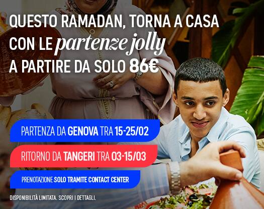 Imbarcatevi da Genova verso Tangeri per raggiungere la vostra famiglia e vivere il mese del Ramadan a casa. Le partenze sono previste tra il 15 e 25 febbraio, mentre i ritorni tra 3 e 15 marzo. Scegliete ciò che più vi conviene: solo andata, solo ritorno o andata e ritorno. GNV vi confermerà la data definitiva circa un mese prima della partenza, in modo che tutto sia chiaro e ben organizzato.
